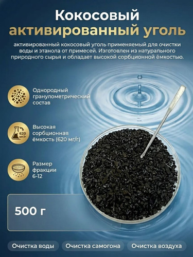 Уголь кокосовый активированный для самогона и воды, уголь для очистки и фильтрации 1 кг