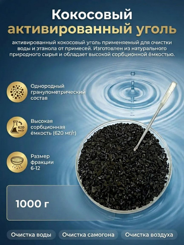 Уголь кокосовый активированный 1 кг для очистки самогона