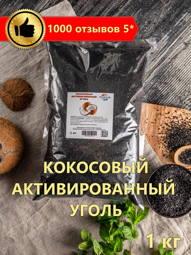 Уголь кокосовый активированный 1 кг (для очистки самогона)