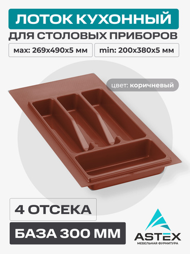 Лоток кухонный для столовых приборов ASTEX, коричневый, в ящик 300мм