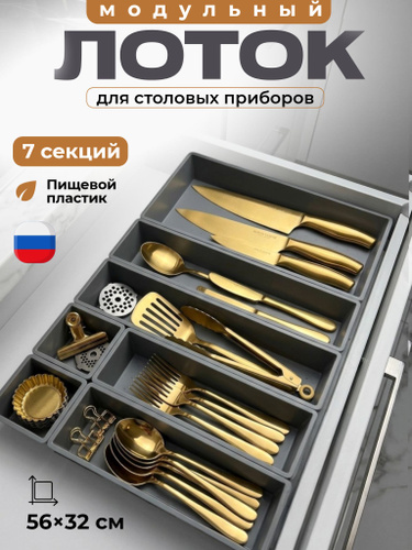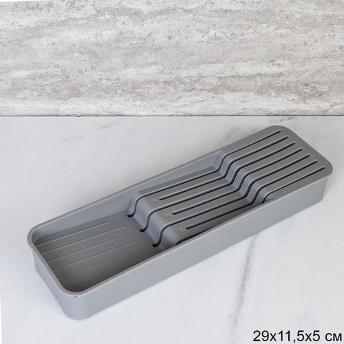 Лоток для столовых приборов,органайзер для ложек и вилок в ящик, серый
