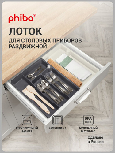 Лоток для столовых приборов Бытпласт раздвижной светло-серый Phibo 43423183051
