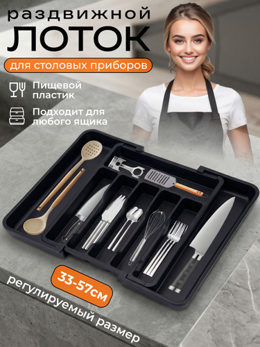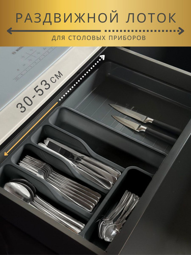 Лоток для столовых приборов раздвижной в ящик