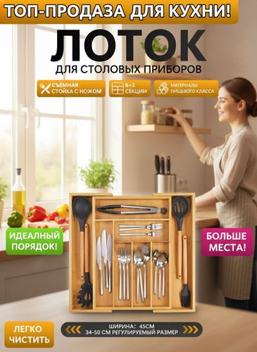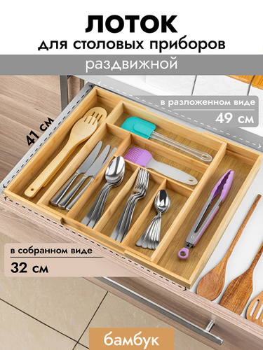 Лоток для столовых приборов в ящик для кухни. Органайзер раздвижной для кухонных принадлежностей, мелочей