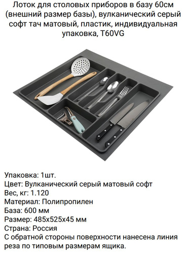 Лоток для столовых приборов в ящик 500мм, серый