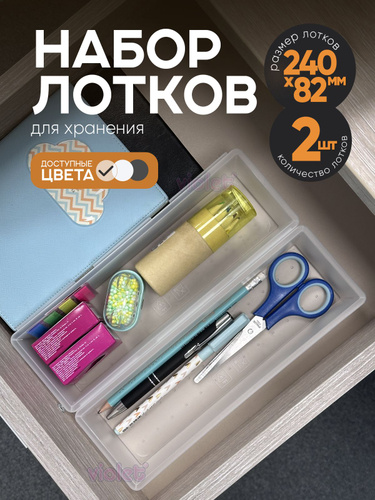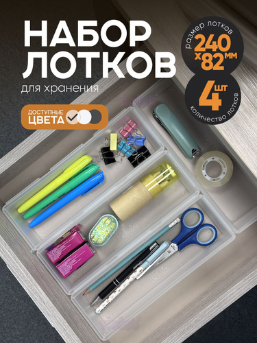 Лоток для столовых приборов в ящик 240х82мм, набор 4 шт., цвет прозрачный / кухонный органайзер сборный для канцелярии