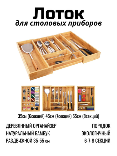 Лоток для столовых приборов,бамбук,раздвижной,50*43*5cm