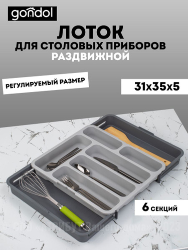Лоток для столовых приборов в ящик раздвижной серый