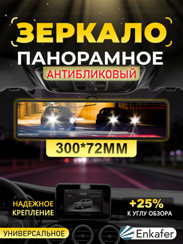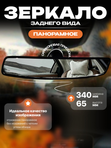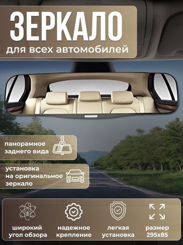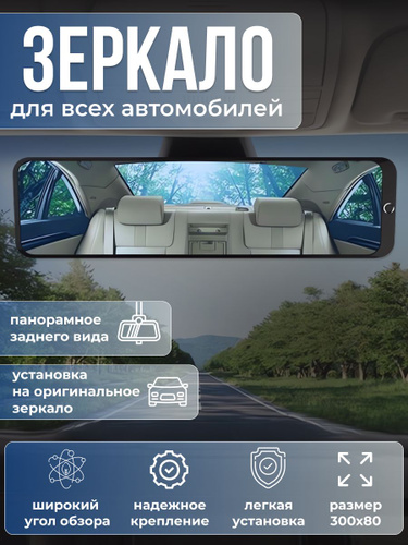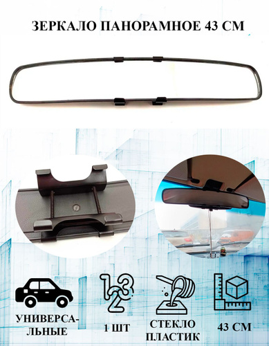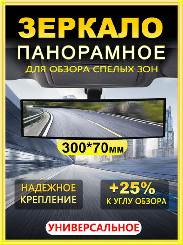 Зеркало заднего вида салонное, панорамное, с креплением, 300мм * 65мм