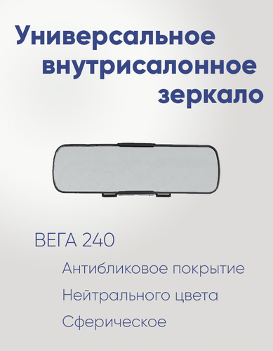Зеркало внутрисалонное накладное универсальное сферическое BЕГА-240 Пн, нейтральный тон элемента, размер 240х75 мм.