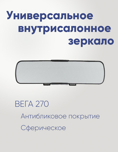 Зеркало внутрисалонное накладное универсальное сферическое BЕГА-270 Пн, нейтральный тон элемента, размер 270х75 мм.