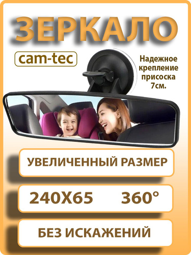 Зеркало заднего вида салонное в автомобиль на присоске, cam-tec