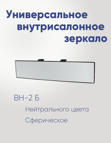 Салонное зеркало заднего вида Политех ВН-2Б, универсальное, сферическое, накладное, нейтральный антиблик, размер 305х70 мм.