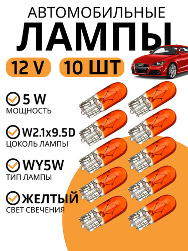 Лампа автомобильная WY5W, W2.1x9.5D, 12В, 5Вт, 10шт NG жёлтая/оранжевая