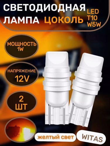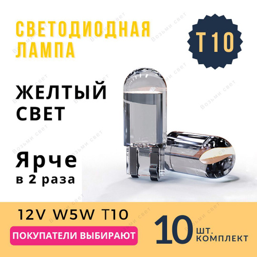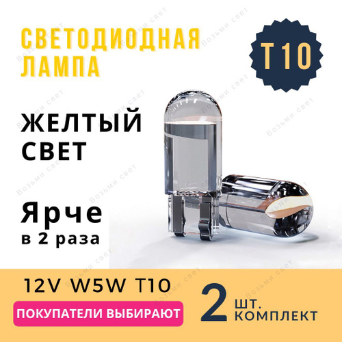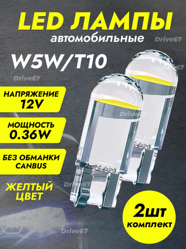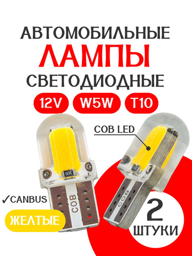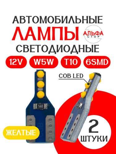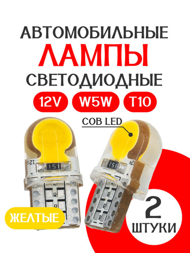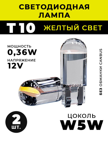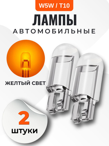 Лампа автомобильная T10, T10W, 2 шт. арт. Лампы светодиодные автомобильные W5W T10 LED 2 шт . желтые
