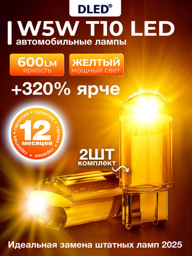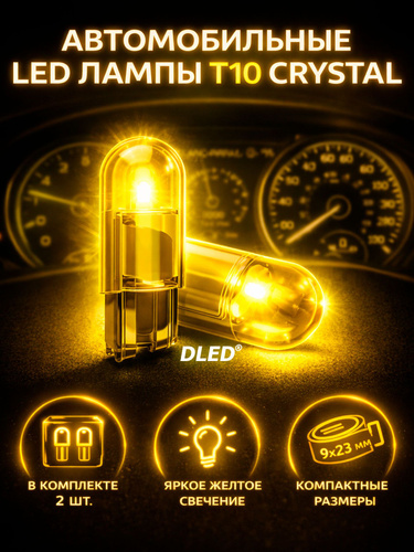 2 шт. Светодиодные лампы T10 W5W бренд DLED серия Crystal для подсветки салона, номера, указателей поворота, габаритов - свет Желтый