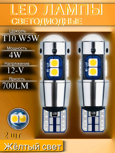 Светодиодные лампы LED W5W T10 желтые, 2шт