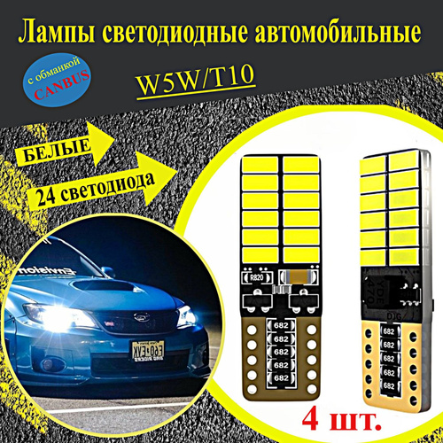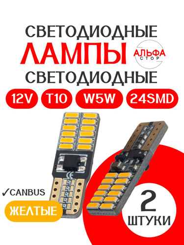 Светодиодная ЖЕЛТАЯ лампа W5W T10 12V 24SMD С ОБМАНКОЙ CANBUS 2 шт в габаритные огни /подсветку салона / багажника / в габариты / в стопы