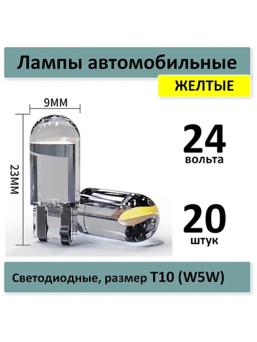 Лампы авто 24V, T10 (W5W) светодиод, желтые, 20 штук