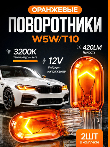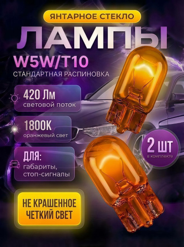 MITSUMORO Лампа автомобильная W5W, 2 шт. арт. W5W Оранжевые