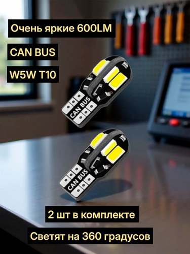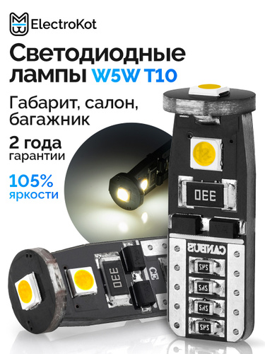 Безцокольные светодиодные автомобильные лампы w5w T10 12V белые биполярные 6000 К с обманкой Canbus в габариты; подсветка номера; салона