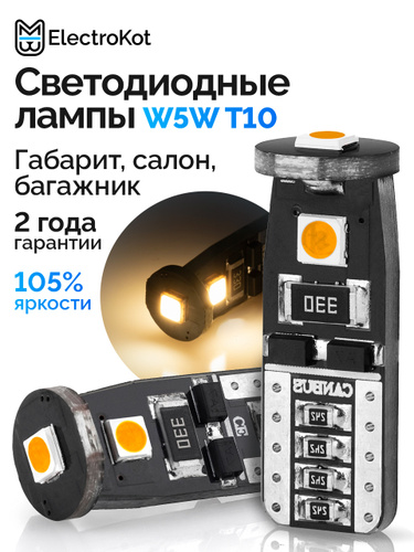 Светодиодная лампа T10 W5W ElectroKot MiniMax 3000K желтый свет 2 шт, в габариты, подсветку салона