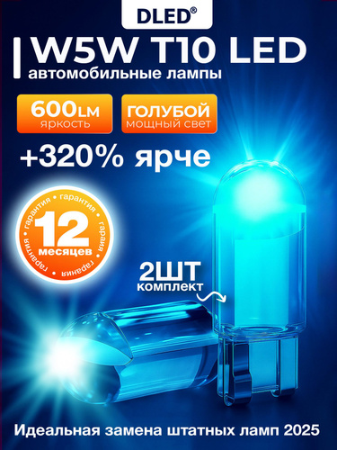 2 шт. Светодиодные лампы T10 W5W бренд DLED серия Crystal для подсветки салона, номера, указателей поворота, габаритов - свет Голубой 8000К