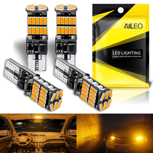 AILEO Лампа автомобильная T10/W5W, 4 шт. арт. лампы W5W T10 светодиодные 3000K Желтый свет Никаких помех 12В 4шт