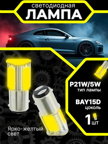 Лампа светодиодная стоп сигнал + габарит P21/5W (BAY15D) яркий желтый 12в