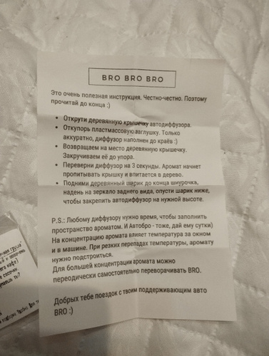 Ещё мы заморочились с упаковкой – это готовый подарок любимой подруге, сестре, маме в теме, коллегам и сотрудникам. Можешь заказать сразу в другой город. А можешь порадовать себя, потому что диффузор BRO BRO BRO повышает уровень удовольствия от жизни.
