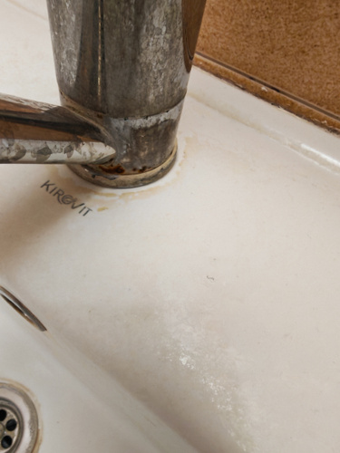 Из капающего смесителя появился налет,похожий на каменный.Забрызгав этим средством ,через три часа,не осталось и следа от налета на чугунной ванне.Осталось только протереть губкой и смыть водой.