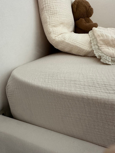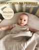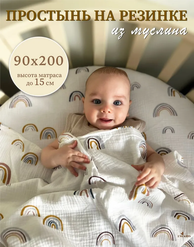 Детская простынь из муслина 90х200 (на прямоугольный матрас) с резинкой по периметру, с принтом "Радуга яркая" - 1 шт