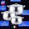 Набор кастрюль из нержавеющей стали со стеклянной прозрачной крышкой 6 предметов 3 кастрюли и 3 крышки оптимально подходит для использования на всех видах плит любого дома, включая газовые, стеклокерамические, галогенные и индукционные, а также для очистки в посудомоечной машине. Декоративная маленькая и большая посуда для кухни объемом 2, 3 и 4 литра, в которой можно тушить мясо и овощи, варить каши, супы, плов и бульоны. Благодаря применению при изготовлении новейших разработок и технологий сковорода обеспечивает прекрасные результаты при приготовлении различных блюд.