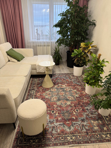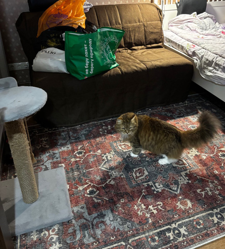 Ковер хлопковый нескользящий от decor magic антивандальный - отличный вариант для любого напольного покрытия, чтобы создать уют. Конечно, в гостиную или зал ковры напольные непромокаемые подойдут лучше всего. Несмотря на отсутствия ворса, прямоугольный ковер мягкий и приятный на ощупь, на нем не остаются зацепы от когтей. Совет от нашего дизайнера: постелите маленький ковёр в спальню, как прикроватный и ваши ножки скажут вам спасибо. Грязезащитный барьер и водонепроницаемый эффект позволяют удалить пятно всего за несколько секунд с помощью салфетки, и никакой кухонный сюрприз вам не страшен. А с обычным мусором легко справится даже дешевый робот-пылесос. Это актуально, если положить безворсоаый комнатный коврик этой серии на кухню или в зону столовой. Универсальный размер 160 на 230 см, так же как и 150х230 см хорошо впишется в большинство типовых комнат. Натуральный и антибактериальный палас, благодаря своей плотности, убережет от сквозняков. Не ограничивайтесь в использовании ковров квартирой - постелите их в загородный дом в гостинную или на дачу. Дизайны этих турецких ковров и паласов для дома в современном стиле красивые, разработаны профессионалами и прекрасно сочетаются с другим текстильным декором от DECOR MAGIC. Смотрите рекомендации, чтобы собрать полное интерьерное решение без труда и хлопот. Так что не смотря на отсутствие ikea, ковер тканный декоративный моющийся и противоскользящий - это прекрасный пода-рок к любому празднику: на день рождения подруге или другу, 8 марта маме или любимой, 23 февраля папе или брату. Технологически допустимые отклонения от заявленного размера +/- 5 см, от веса +/- 50 гр/кв.м, согласно ГОСТ 28415-89. Цвет товара может не совпадать с представленным на фото в связи с индивидуальными особенностями цветопередачи и яркости монитора, а так же цвет в одном дизайне, может не совпадать из-за разности фактур. Заломы, возникающие при транспортировке, легко устраняются при отпаривании на средней температуре (до 150 С) "с лица" через слегка влажную ткань. Можно стирать в стиральной машине на бережном режиме при 30 градусах, сушить вертикально. Использовать моющий пылесос, стелить на пол с подогревом.