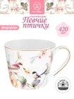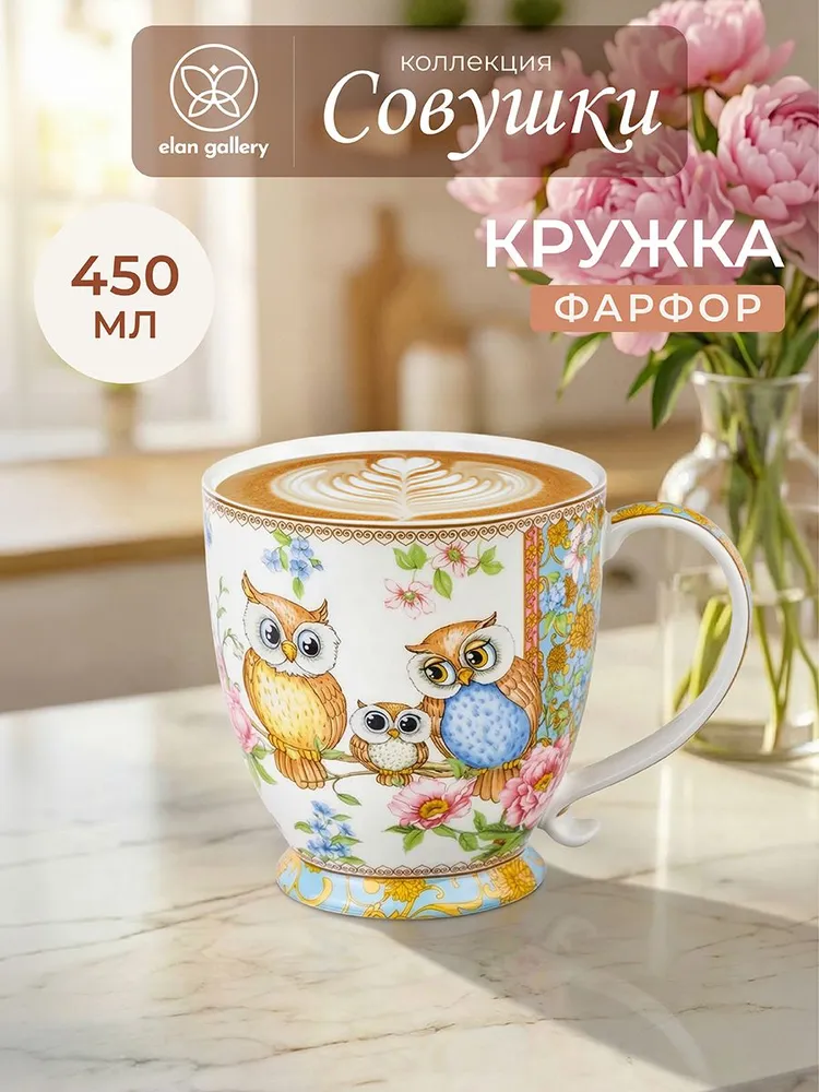 Кружка из серии «Совушки» от Elan Gallery предназначена для эстетичной сервировки вашего стола. Размер изделия – 13,5х10х10,5 см, объём – 450 мл. Выполнена из фарфора нового поколения new bone china, сочетающего в себе изящность и высокую прочность. За счёт гладкости изделия легко отмываются, поэтому сохраняют привлекательный внешний вид и практичны в использовании. Плотная структура материала позволяет посуде дольше сохранять температуру блюд и напитков. От других видов костяного фарфора new bone china отличается большей экологичностью в производстве. Поверхность изделия украшает забавный рисунок: две совы и маленький совёнок с большими глазами сидят на ветке дерева. Нежные бутоны розовых и голубых цветов, а также растительный узор на фоне придают композиции сказочности и тепла. Кофейная кружка поможет вам провести множество приятных завтраков с капучино и латте, а также уютные чайные вечера с конфетами, вафлями, другими десертами и сладостями. Декоративное изделие позволит организовать запоминающееся чаепитие. Не рекомендуется применять абразивные моющие средства. Подходит для использования в посудомоечной машине и микроволновой печи. Поставляется в дизайнерской картонной коробке – благодаря ей вам не потребуется дополнительная подарочная упаковка. Фарфоровая сервировочная посуда будет оригинальным подарком для хозяйки, ценящей не только практичность, но и привлекательность. Серия «Совушки» от бренда Элан Галерея станет украшением любого кухонного инвентаря и позволит собрать красивый сервиз в едином стиле!