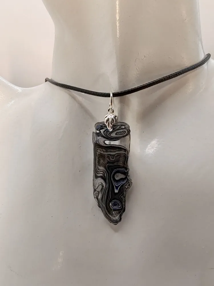 Подвеска из Фордита собственного производства. Фордит это искусственный камень возникающий при напылении множества разных слоев автоэмали. Ручная работа