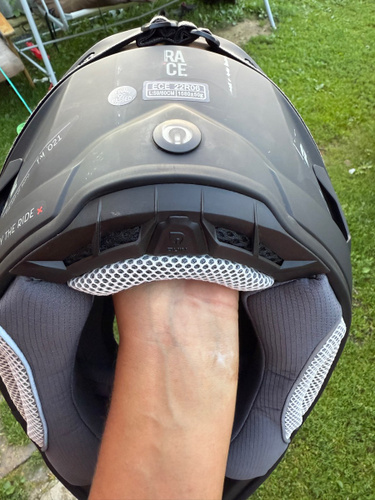 Шлем для мотокросса с 2 внешними оболочками и 2 размерами защитного слоя EPS для повышенной безопасности и идеальной посадки.