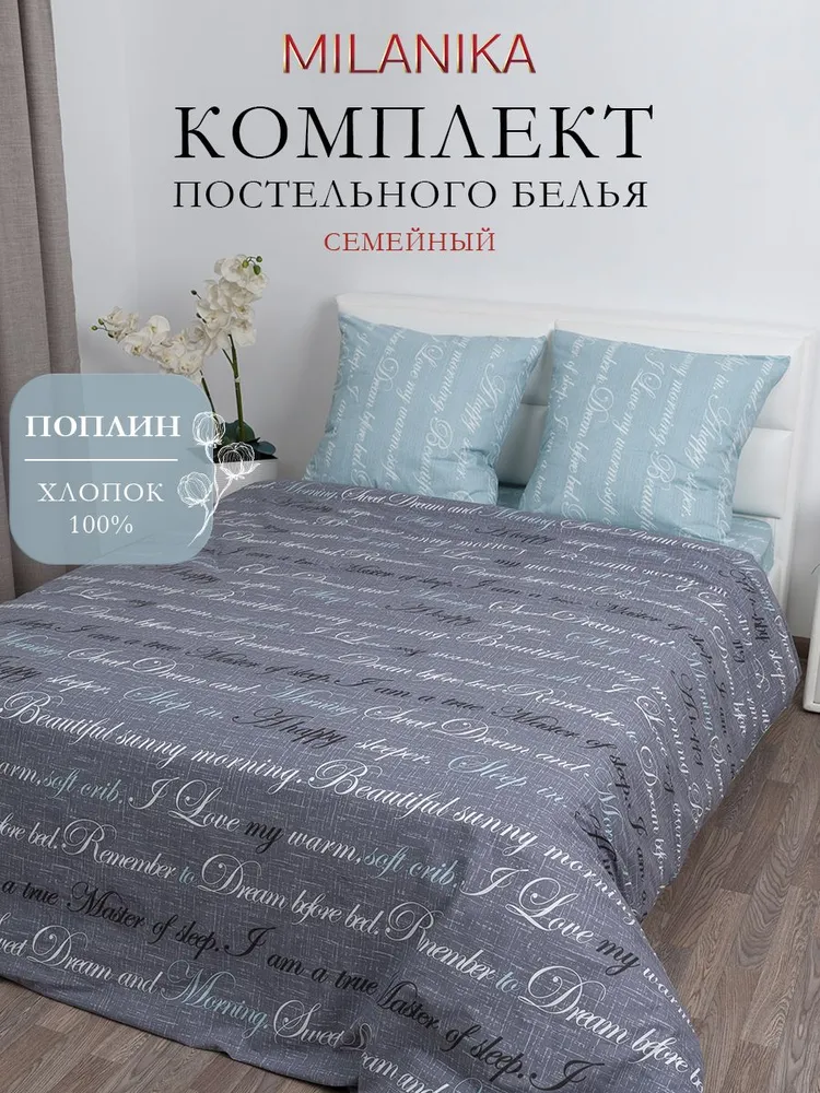 Постельное белье семейное поплин MILANIKA ПисьмоПроблема выбора качественного и красивого постельного белья стоит перед каждым из нас, будь то для дома или гостиницы. Постельное белье, представленное от производителя ТМ Миланика из города Иваново, решает её с максимальной эффективностью. Наша продукция — это комплект постельного белья из набивного поплина хлопок 100% для комфортного сна.