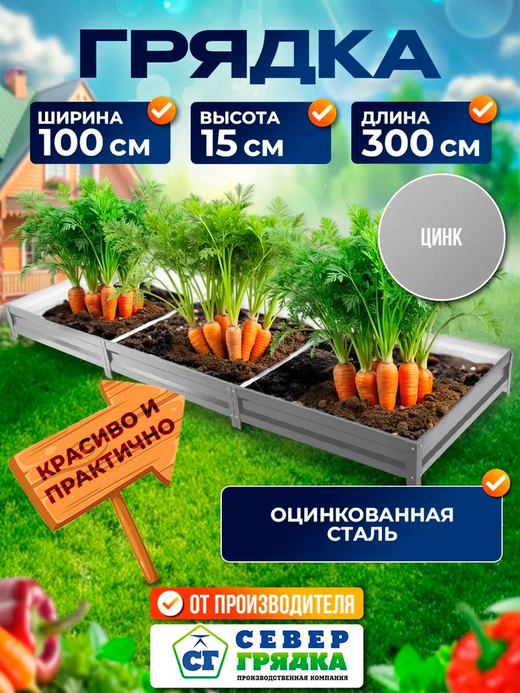 Оцинкованная грядка 1 м* 3 м (высота борта 15 см) предназначена для формирования ровных гряд на открытом грунте.