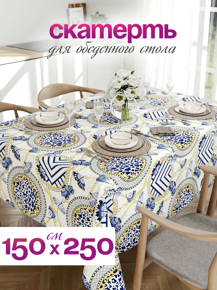 Отзывы о товаре 16 Скатерть тканевая прямоугольная на стол 150 на 250 см c рисунком Бабочки и Узоры