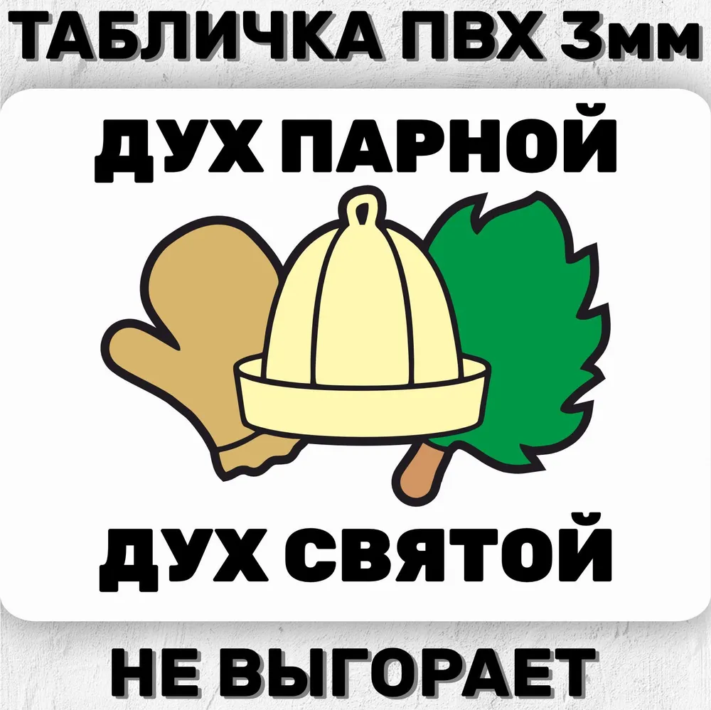 Табличка из пластика ПВХ 3мм. Не выгорает на солнце. Устойчива к любым погодным условиям. Экологичный материал. Безопасные эко чернила. Собственное производство. Срок службы 10 лет. Гарантия 1 год. Таблички крепятся на стекло, металл, дерево с помощью двустороннего скотча, жидких гвоздей, саморезов, клея т. д. Для любителей бани мы изготавливаем таблички для бани. Табличка Дух парной Дух святой может служить отличным подарком банщику. Табличка на стену, на дверь, табличка в баню, банные таблички, баня сауна, парилка, парная. Интерьерные таблички можно использовать как прикольные развлекательные таблички в сауну. Таблички для бани зададут нужную атмосферу для общения. Прикольная табличка на дверь — отличный способ добавить свежести и индивидуальности в интерьер комнаты. Она может быть оригинальным дополнением к общей теме декора или самостоятельным элементом, привносящим нотки юмора и необычности. Оригинальные прикольные таблички могут иметь разные надписи, цитаты, иллюстрации или рисунки. Помимо этого, прикольные таблички так же могут являть собой таблички информационные. Например: Прикольная табличка на дверь туалета встроится в интерьер любого дома или уличного туалета. Для владельцев дач мы изготавливаем таблички для дачи. Табличка Моя дача – мои правила может служить отличным подарком дачнику. Интерьерные таблички можно использовать как красивый садовый декор садовые декоративные таблички сад и дача. Таблички для дачи зададут нужную атмосферу для общения. Прикольные таблички могут служить не только украшением для комнаты, но и прекрасным подарком для подруги, девушки на 8 марта, как подарок мужчине или папе на 23 февраля, 14 февраля или Новый год, табличка для дачи – хороший подарок маме на день рождение. Интерьерные таблички – это беспроигрышный способ украсить обстановку, порадовать близких подарком и выразить свою индивидуальность. Приятных покупок!